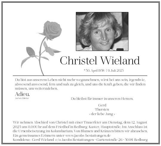 Christel hatte immer einen lustigen Spruch auf den Lippen und auch in schwierigen Zeiten nie den Optimismus verloren!