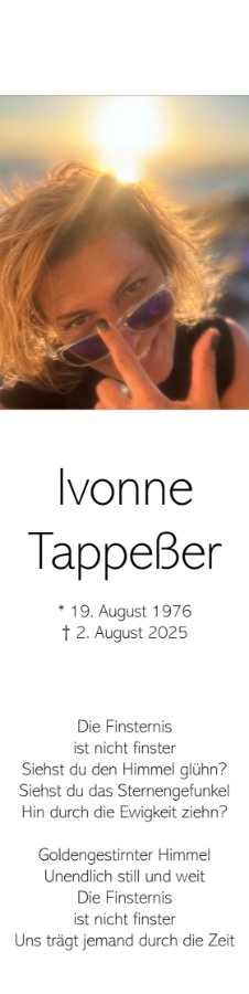 Es ist so furchtbar das du so früh gegangen bist, wir kannten uns nicht lange, aber ich hatte dich sofort in mein Herz geschlossen. Einfach nur traurig und unfassbar. R.I.P LIEBE IVONNE
